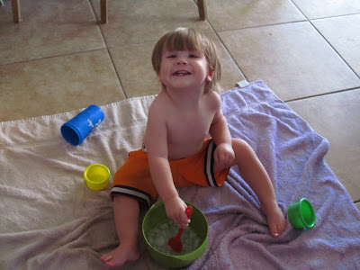 Last week, I posted about how hot it is. Well, it is still incredibly hot but I have found activities to keep my little man cool and occupied while I am working during the hottest hours of the day. We play with ice, and water...we make a huge mess, but it is fun and it is a nice break from the scorching heat. Right now, I have three or four towels on my kitchen floor, along with several kitchen tools scattered about. I try to clean it all up every night, but I find that since we are playing with the bowls, and kitchen tools EVERY day, I just pile them up until our next water play time the next day. We had a pretty good weekend, we got to spend some time with other adults outside of our house; which I loved! I think we are starting to branch out and make "couple friends." I made english muffins from scratch this week, and the turned out pretty awesome...other than that, no news for this week. We are looking forward to Cousins Campout this weekend though!! See many of you there!
